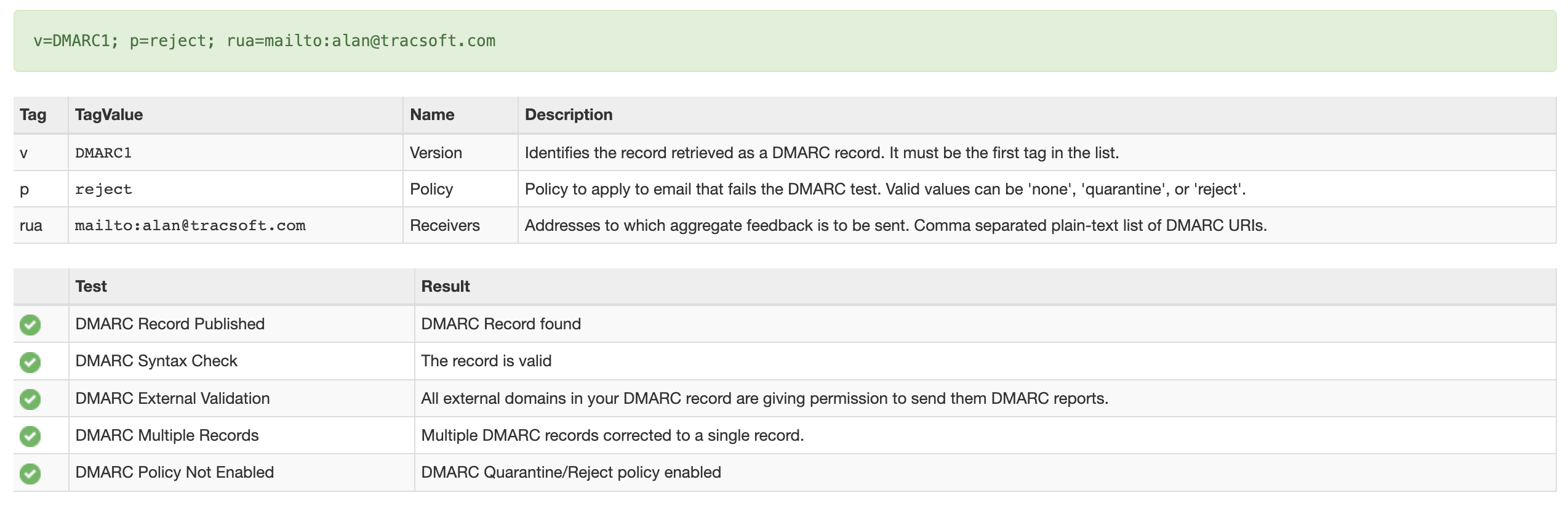 If your DMARC was setup correctly, you will see green check marks.